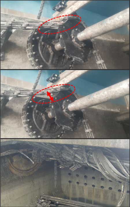 <구동부 스프라켓과 구동체인의 감김현상 발생> |