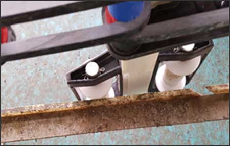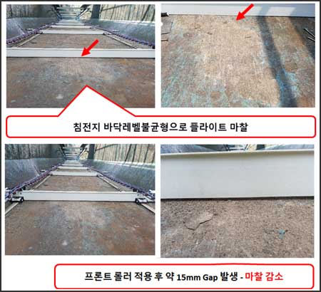 | 2) 하부 레일에 프론트롤러가 먼저 랜딩(착지)함으로 체인이탈 억제 |